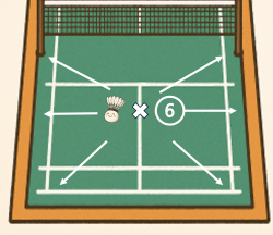 シャトル置きとはコートの中央からコート端の6点に向かってシャトルを置きに行くという練習です。