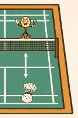 - 体の斜め上に腕をだすことでコートの奥を指示します
